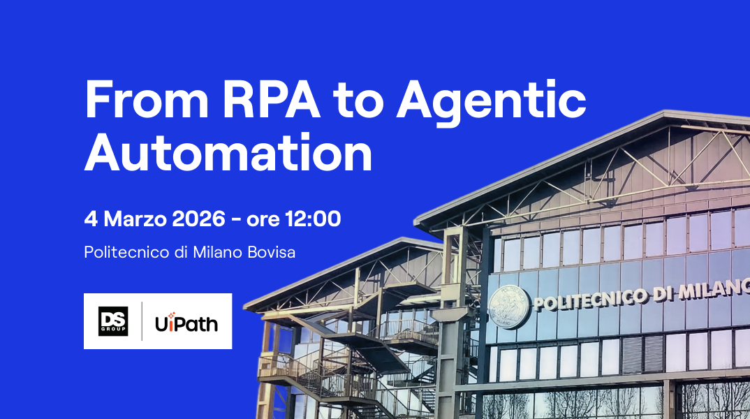 In qualità di Partner, DS Group e UiPath prenderanno parte a una roundtable dedicata all’evoluzione dell’automazione, incentrata sul passaggio dall’RPA tradizionale ai nuovi paradigmi di Agentic Automation. Nel corso della sessione interverrà Andrea Corain, Principal Solution Engineer di UiPath, che approfondirà casi d’uso, scenari applicativi e le principali sfide di adozione dell’automazione agentica.